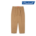 防寒性とイージーケアを両立した裏起毛フランネルの1タック入りスラックス。 バック右側の片玉縁ポケット上にレザーパッチ付き。 ウエストにロゴプリント入り金属チップの付いたドローストリング。